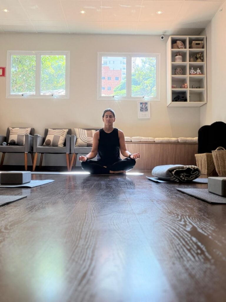 O yoga promove a conexão entre corpo e mente, ajudando a alcançar um estado de equilíbrio emocional.