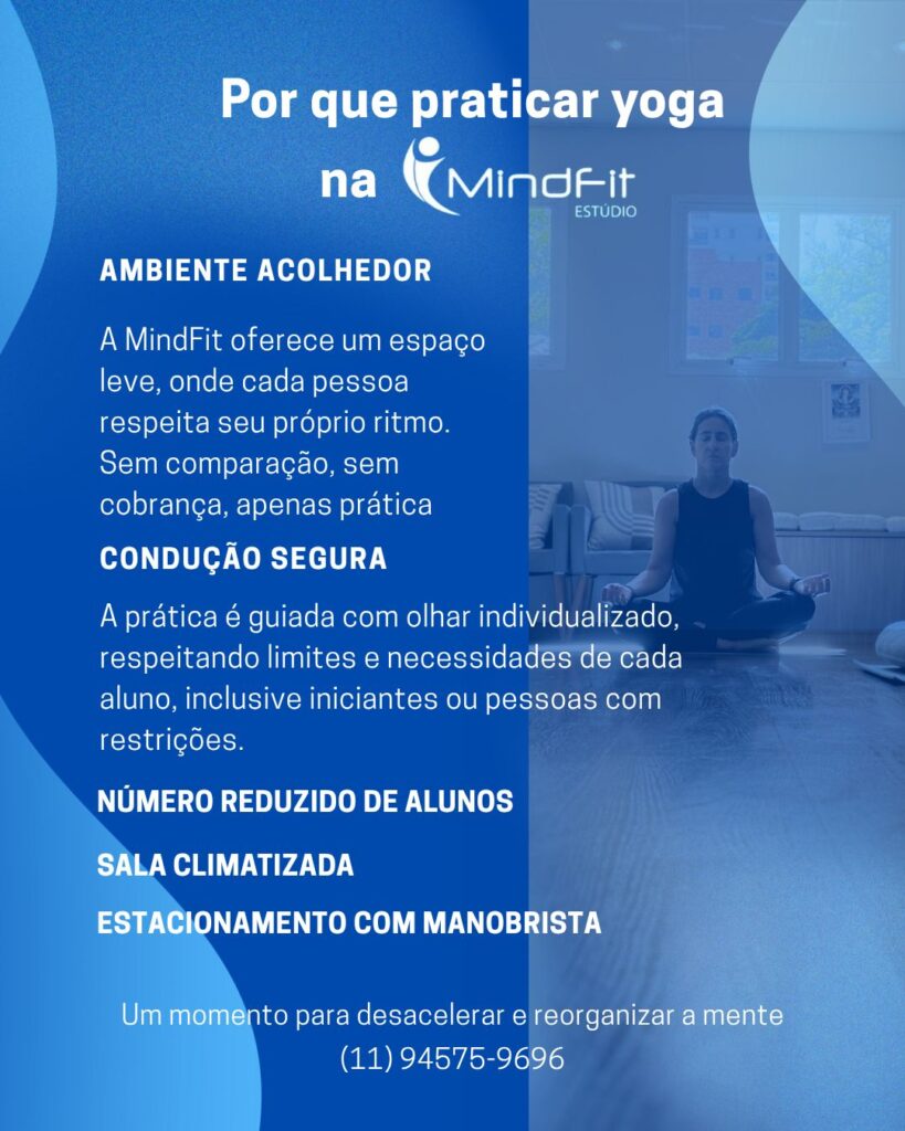 A prática regular de yoga ajuda a acalmar a mente e reduzir o estresse do dia a dia.